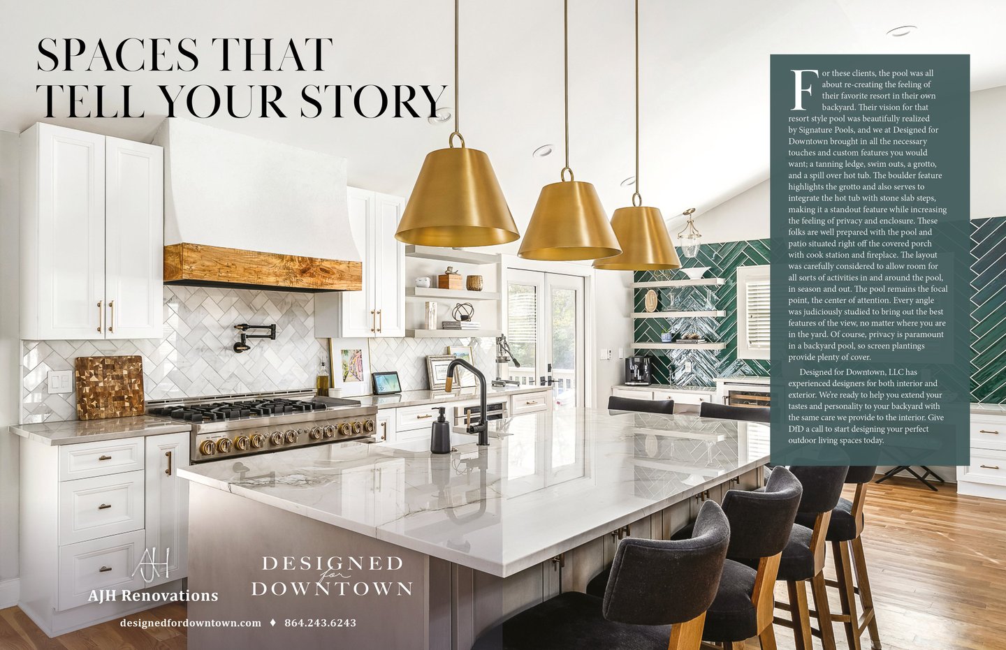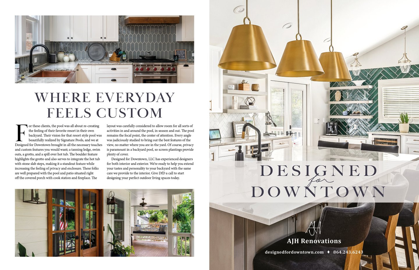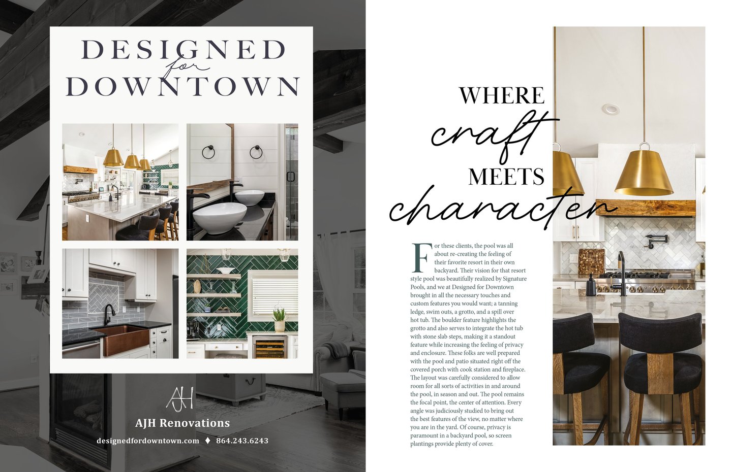 This project reimagines branded content for AJH Interiors within atHome magazine. Designed as a two-page spread, the layout balances immersive, full-bleed imagery with thoughtfully structured body copy. I aimed to create an editorial experience that highlights both the brand’s aesthetic, services, and design perspective.