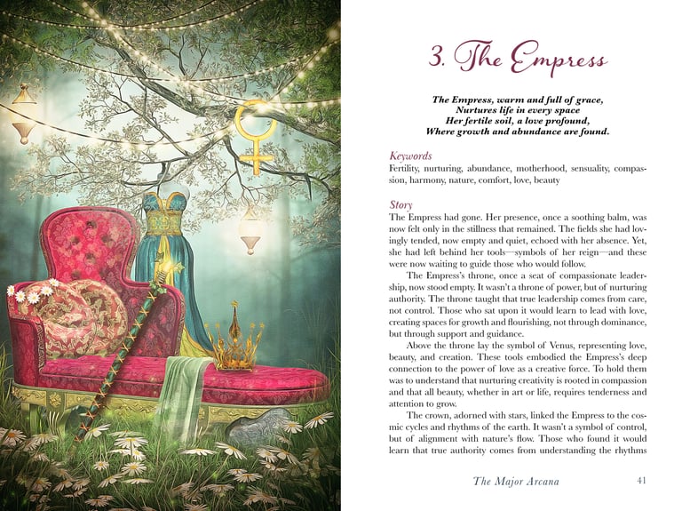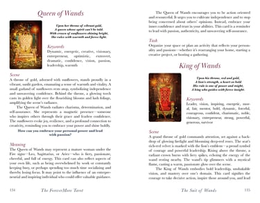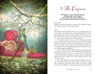 A project with this many pieces was certainly daunting initially. I felt like I had to do right by the talented artist who made the illustrations. While all are very distinct, the elements in each piece blend into an elegant, dream-like feeling. This continues even into the interior of the guidebook and creates a full experience for the tarot reader.